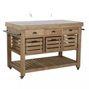 Drinks Trolley Teak Wheel Natural Brown