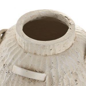 The vase’s aged white patina pairs perfectly with rustic, shabby chic, or romantic interiors, adding warmth and sophistication to entryways, living rooms, and terraces.