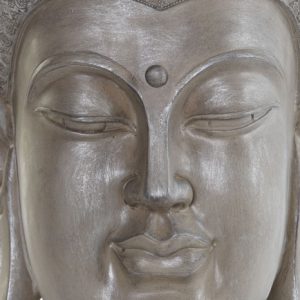 With its generous dimensions of 58 cm in height, this piece is ideal as a statement décor item for living rooms, meditation spaces, or entryways. The neutral grey finish adds versatility, blending seamlessly with a variety of color palettes and styles.