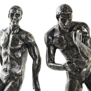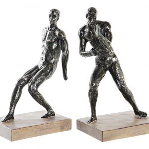 Stylish, functional, and full of personality — this set of 2 Resin & Wood Bookends brings a sculptural touch to your bookshelf or workspace. Featuring a modern black “man” figure design against a warm natural wood base, it perfectly embodies the industrial yet artistic feel of the Loft Collection.