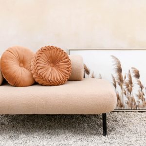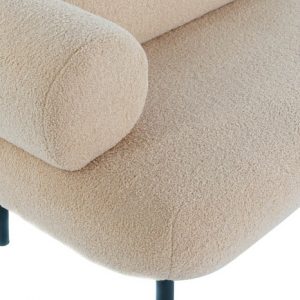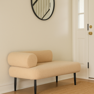 With its soft, boucle-style beige upholstery and rounded armrest, this piece brings a touch of modern sophistication to any corridor or entryway. The black metal legs provide stability and a sleek contrast to the warm neutral tones, making it an effortless addition to both minimalist and contemporary homes.