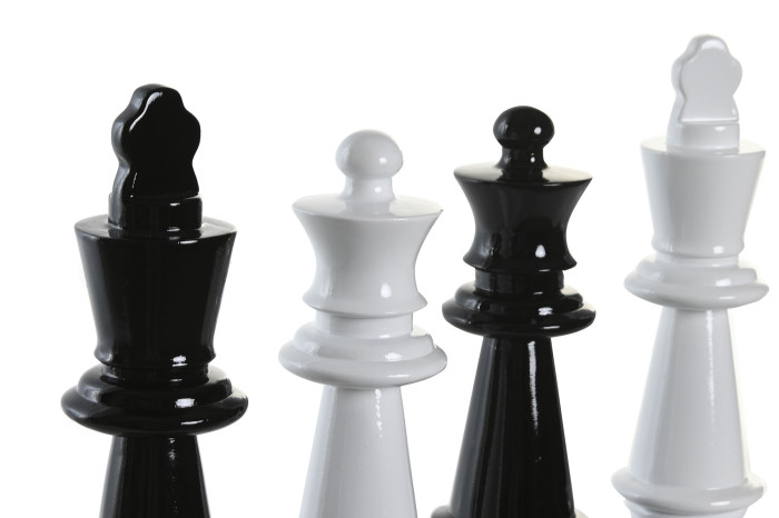 Elegant and contemporary, this set of decorative chess figures brings a touch of sophistication to any modern interior. Made from durable resin in a sleek black and white finish, each piece captures the refined geometry and timeless charm of classic chess design. Perfect for display on shelves, consoles, or office desks.