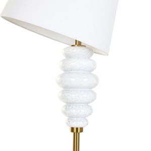 Add a touch of glamorous sophistication to your space with this Ceramic and Metal Floor Lamp. Featuring a unique sculptural design of white ceramic discs set along a refined gold-finished metal structure, this piece stands out as both a source of light and a statement décor element.