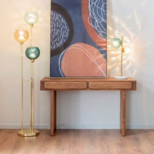 Glam Floor Lamp with Glass Balls – Golden Metal Multicolor Accents
