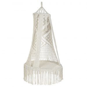 Relax in style with the Macramé Cotton Hanging Chair from the Sea Side Collection. Handcrafted with care, this piece combines bohemian charm and urban comfort through its intricate macramé design and soft cotton construction.