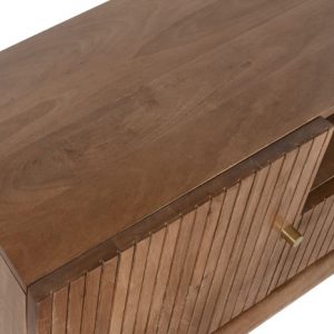 The natural mango wood finish highlights unique grain patterns, making every piece one-of-a-kind. With two doors, one drawer, and an open shelf, this cabinet provides both concealed and open storage — ideal for organizing electronics, media accessories, or decorative pieces.