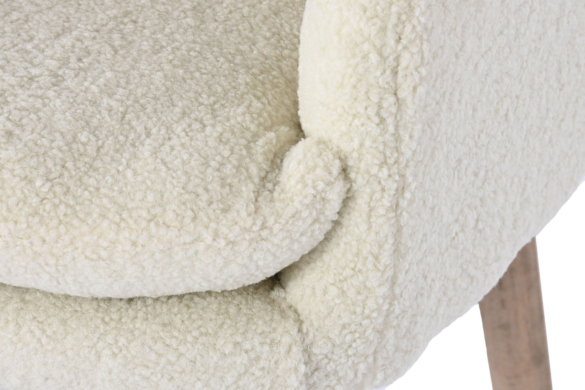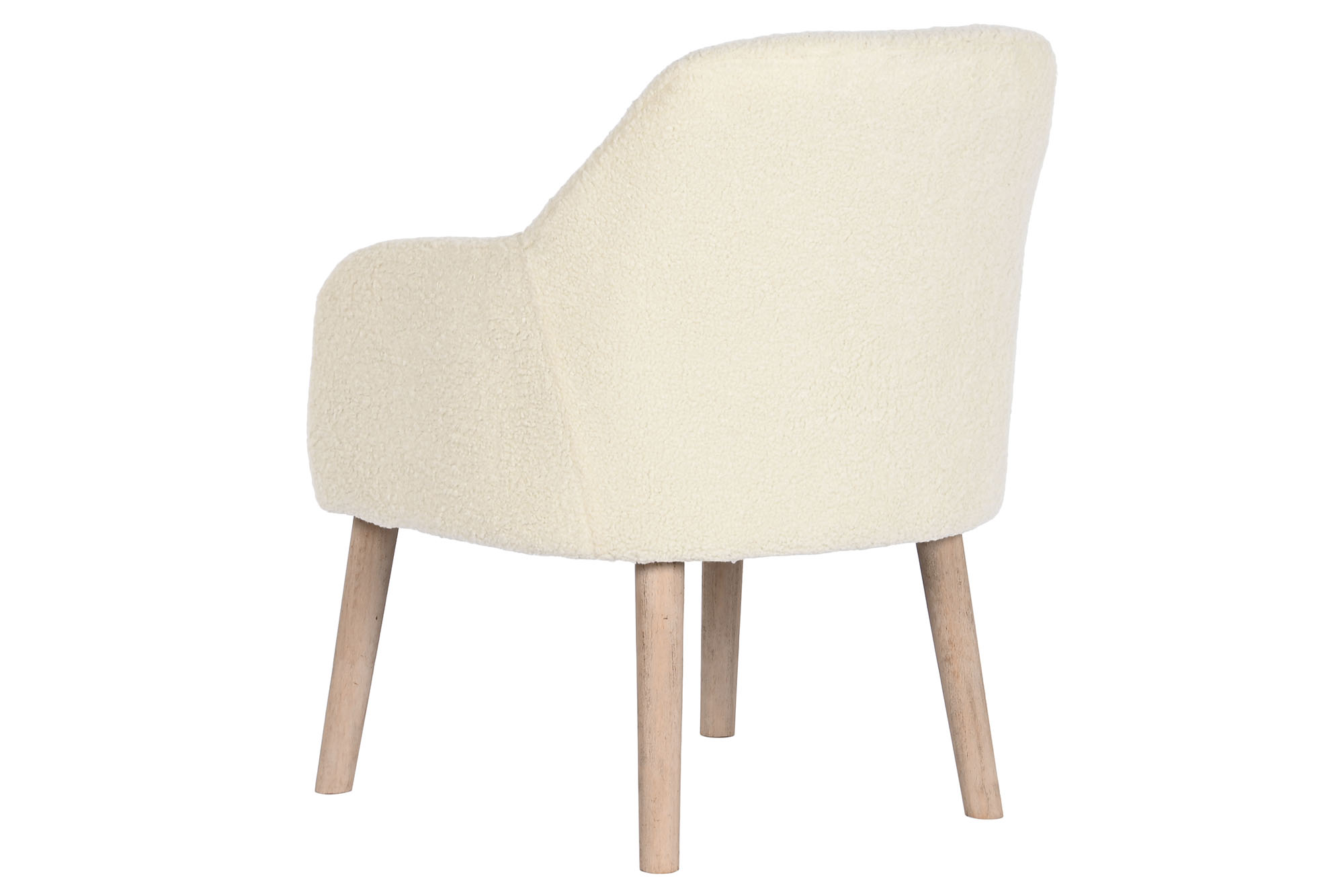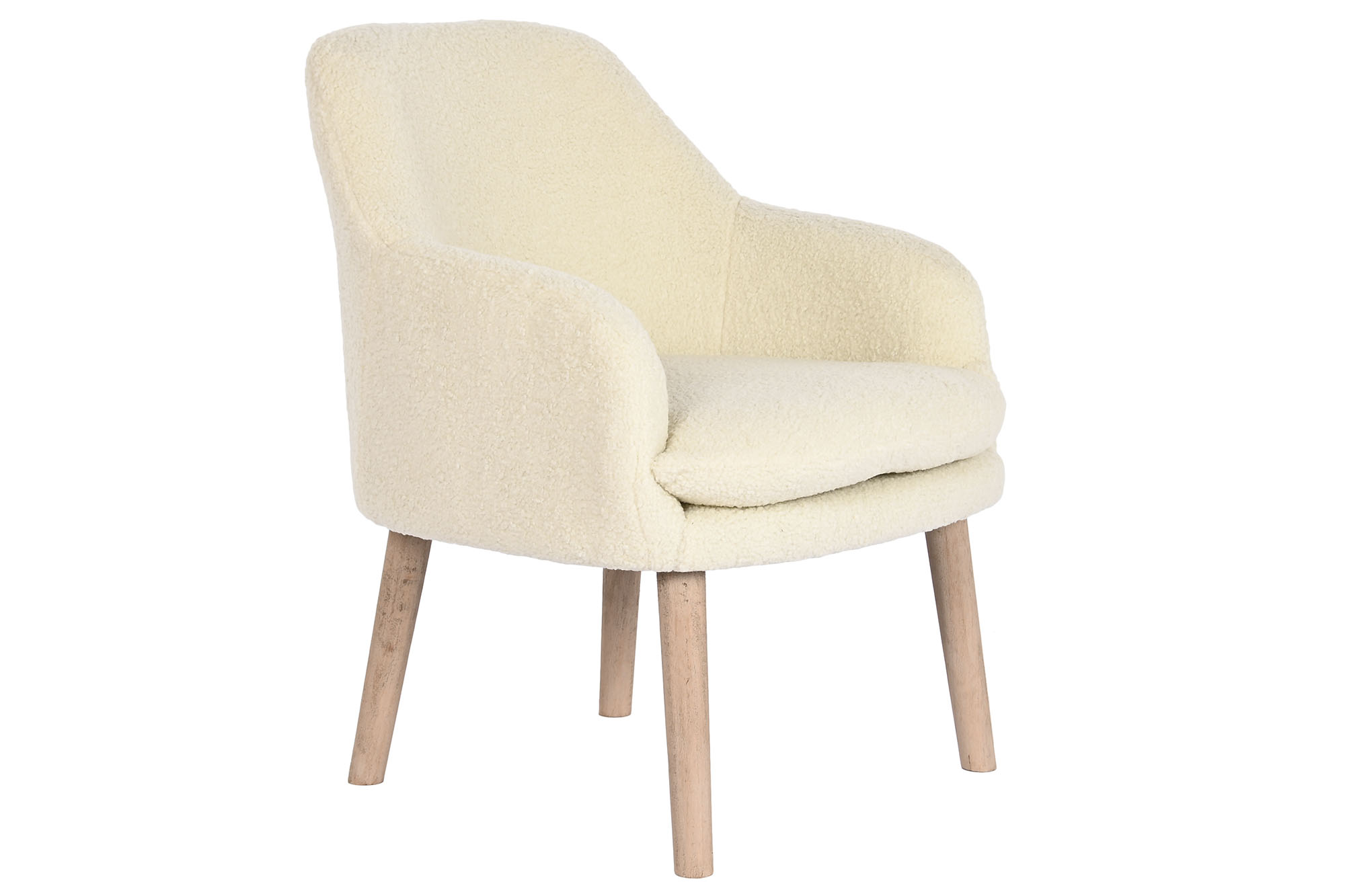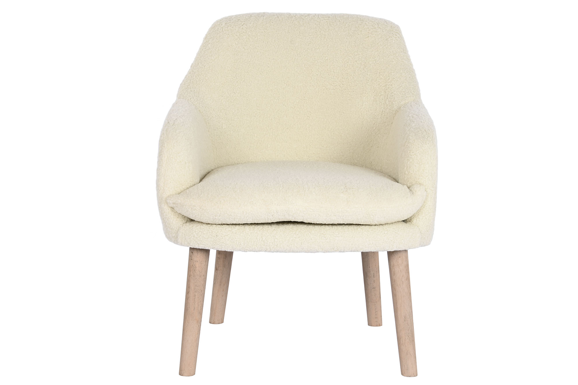 Add comfort and contemporary charm to your home with the Armchair. This elegant piece combines the natural warmth of Hevea (Rubberwood) with the soft, inviting texture of sheepskin-effect polyester upholstery, offering both style and coziness.