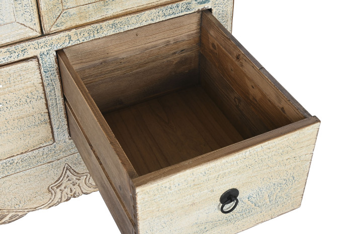 Featuring beautifully carved natural detailing, two spacious doors, two internal shelves and two practical drawers, it offers generous storage while adding warmth and personality to your space.