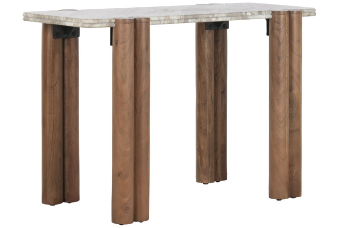 The Tomar Console Table embodies refined modern design with a natural touch. Handcrafted from solid mango wood and topped with genuine marble, this piece perfectly balances warmth and sophistication. The minimalist frame and sleek silhouette make it a standout accent for entryways, living rooms, or hallways, while the marble surface adds timeless elegance and durability.