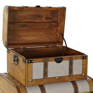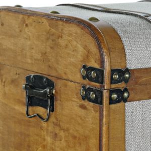 Trunk Set 3 Wood Canvas Brown Beige